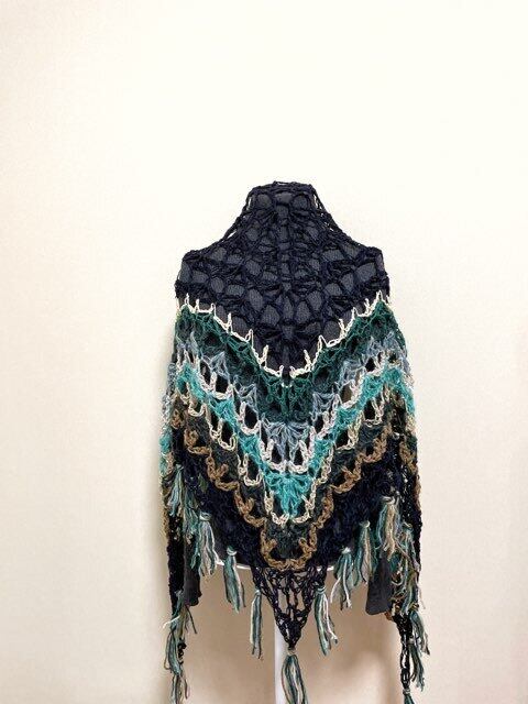 カラフルなストールです。メッシュ感強め。少し薄手。