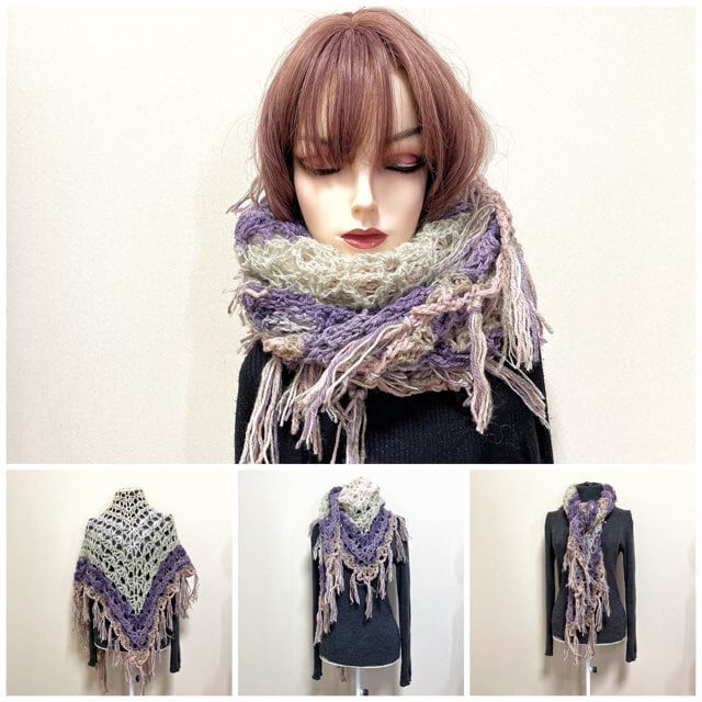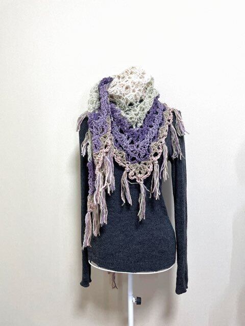 チクチクしにくい様々な素材やカラーを使って仕上げたカラフルなストールです。