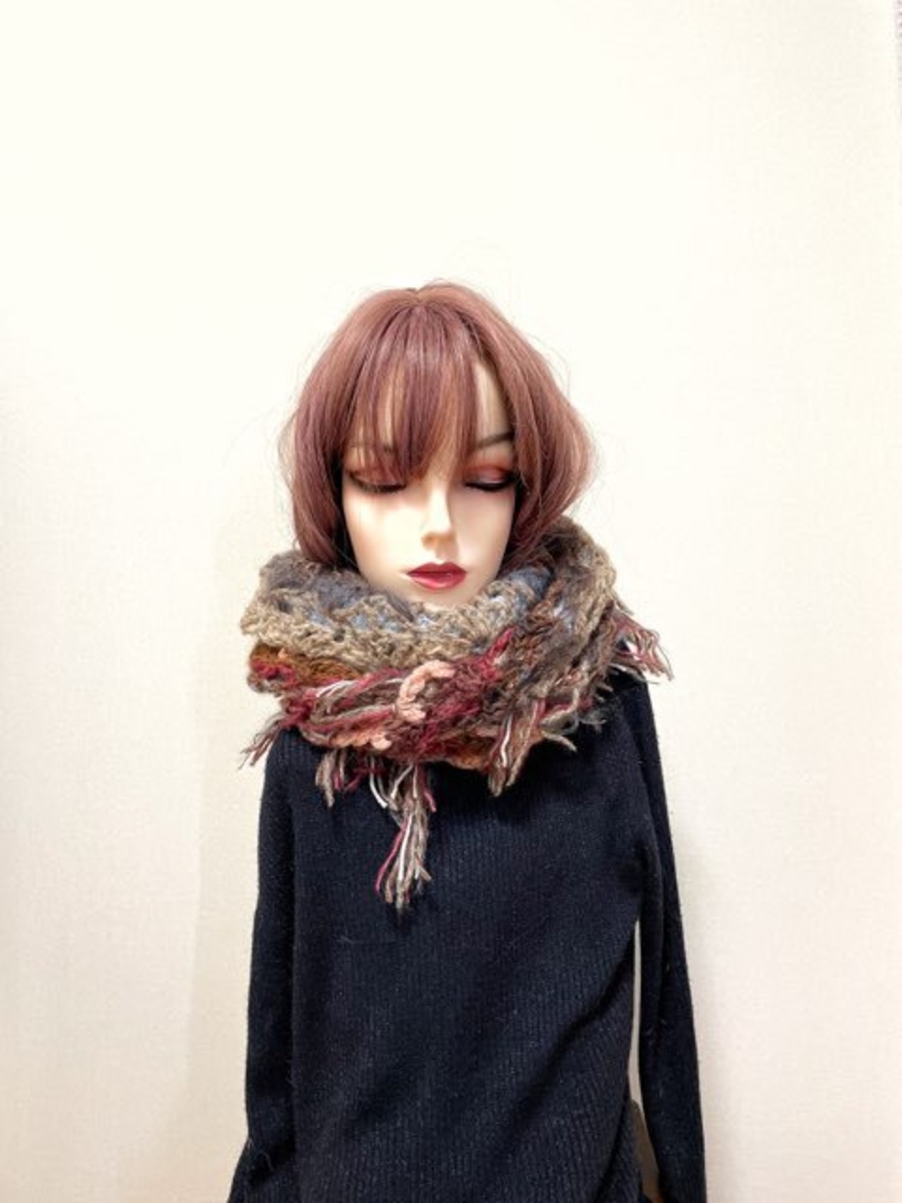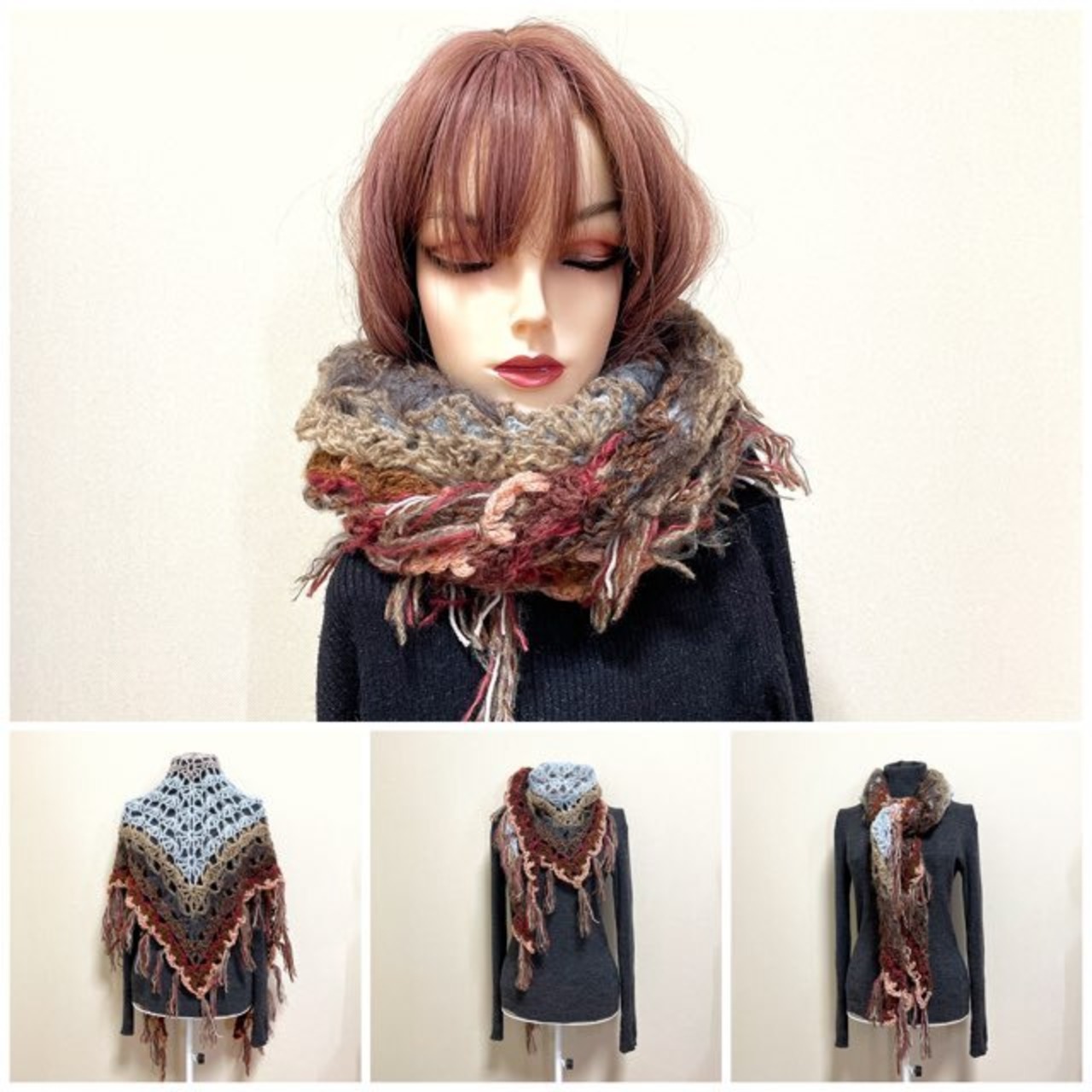 軽くてふんわり、やさしいつけ心地の三角ストールです。