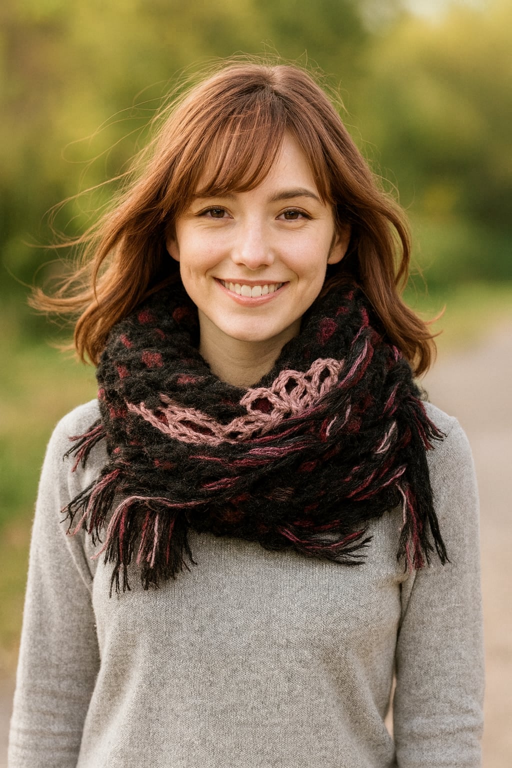 チクチクしにくい様々な素材やカラーを使って仕上げたカラフルなストールです。