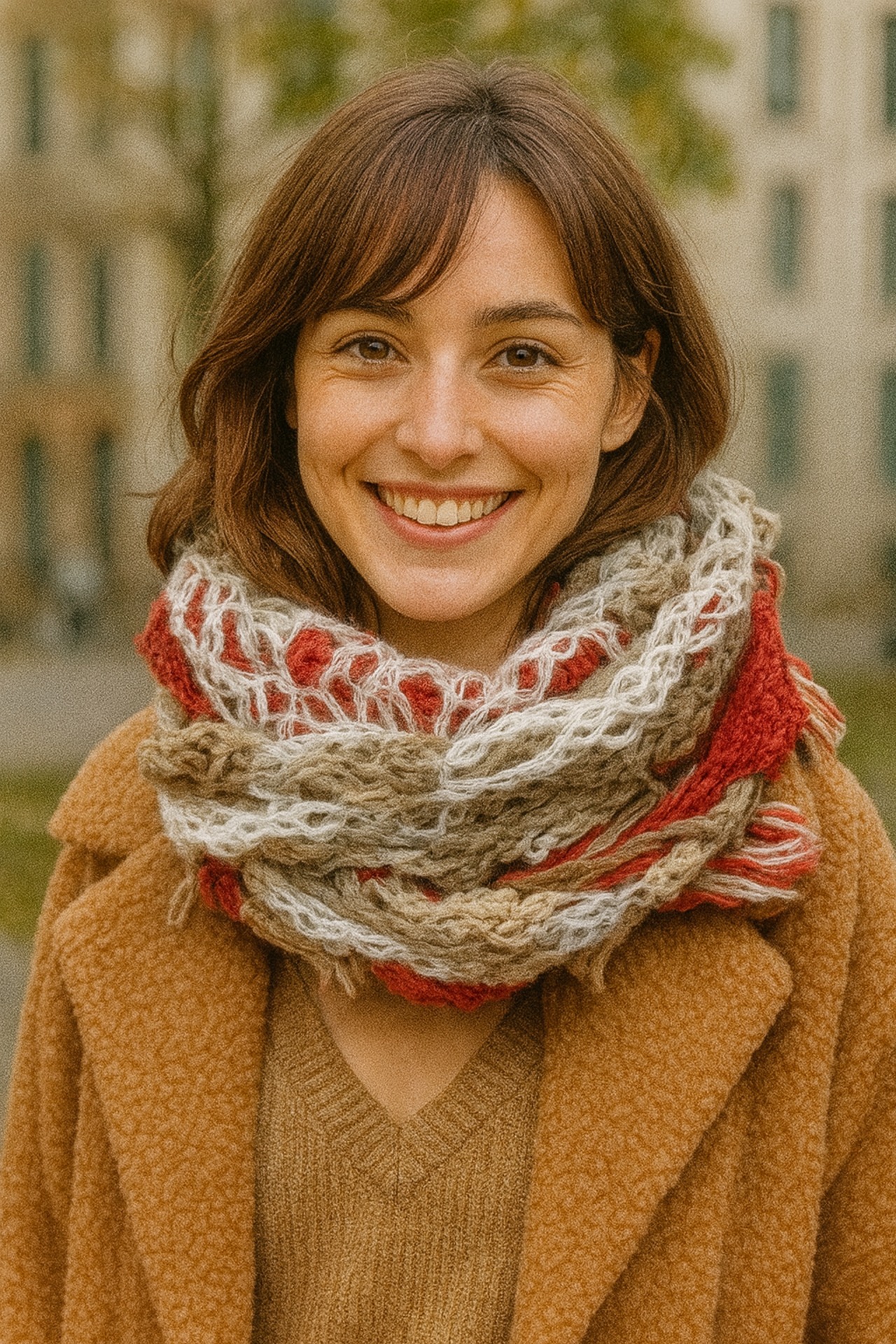 首に巻いた瞬間、やさしくあたたかさを感じられる仕上がりです。