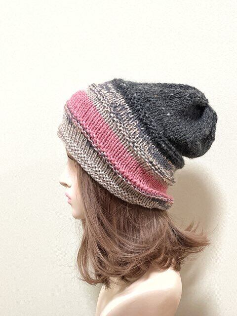 #ニット帽#帽子#ニット#手編み#春#秋冬#冬#厚手#防寒#ザックリ#ゆったり