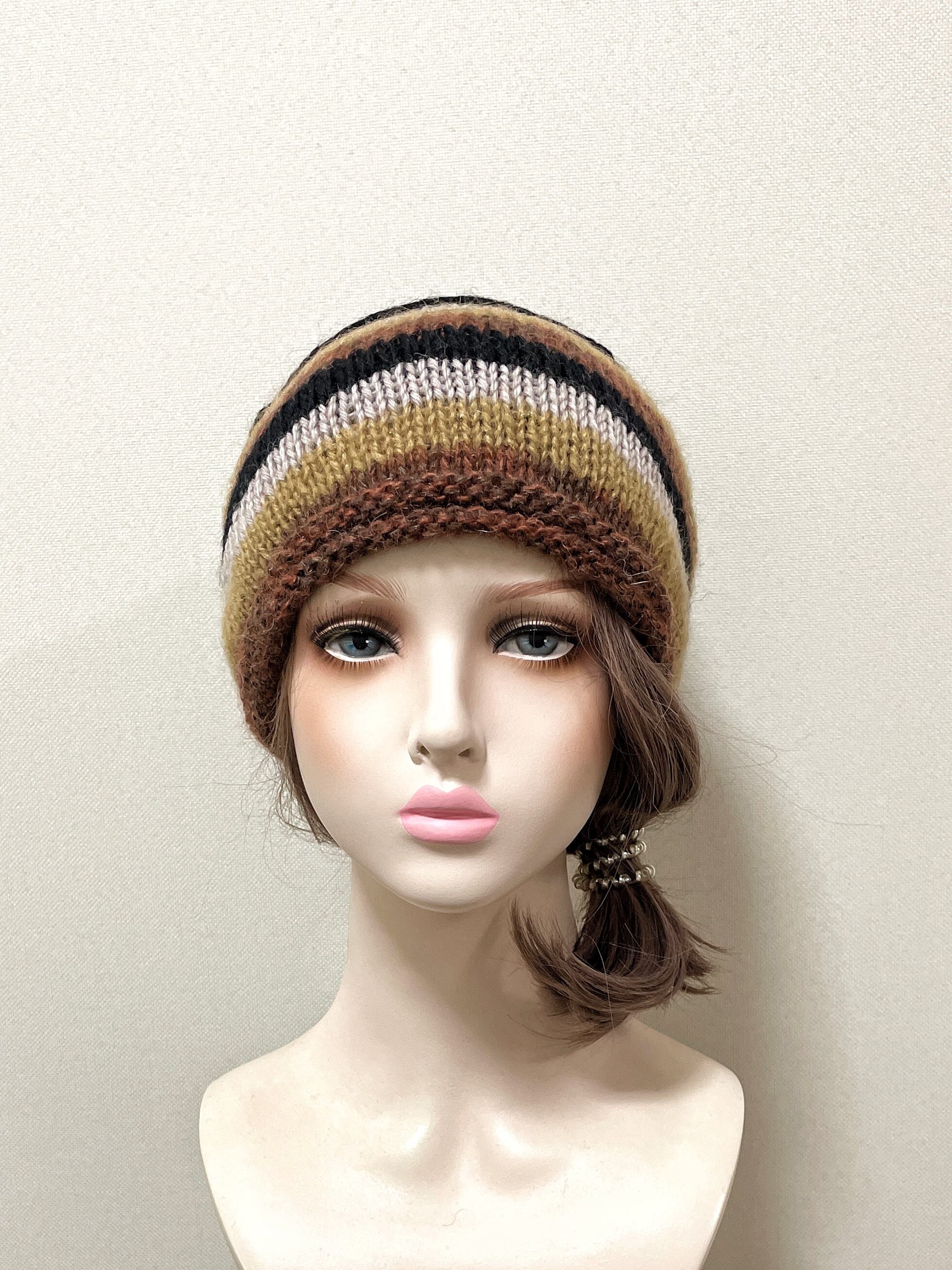 耳まですっぽり被れて温かいゆったりしたボーダーニット帽♡