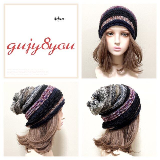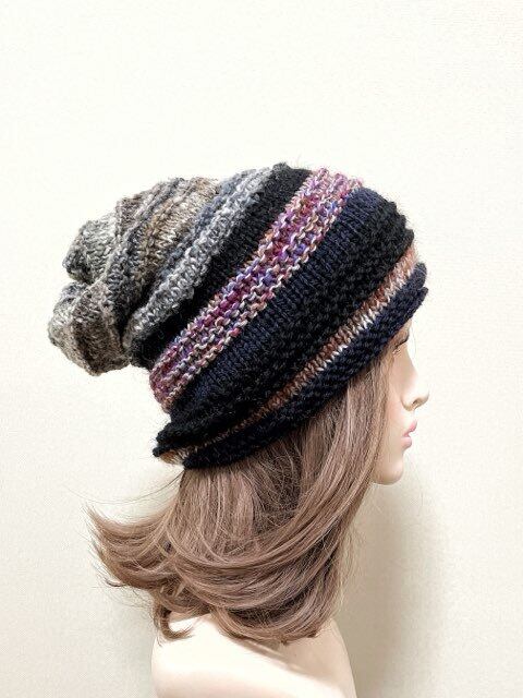 #ニット帽#帽子#ニット#手編み#春#秋冬#冬#厚手#防寒#ザックリ#ゆったり