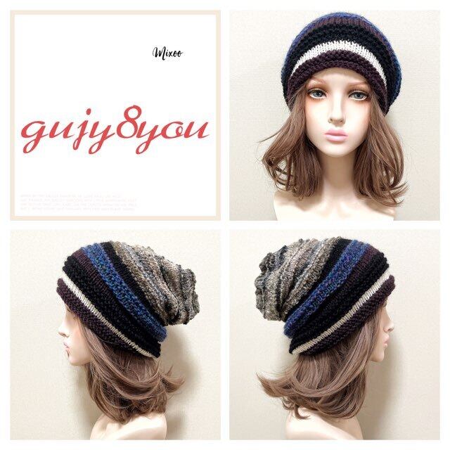 #ニット帽#帽子#ニット#手編み#春#秋冬#冬#厚手#防寒#ザックリ#ゆったり