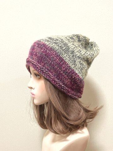 #ニット帽#帽子#ニット#手編み#春#秋冬#冬#厚手#防寒#ザックリ#ゆったり