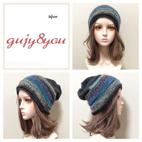 ゆったりニット帽♡オリジナルの配色なのでランダムなライン模様でシンプルにしています♡