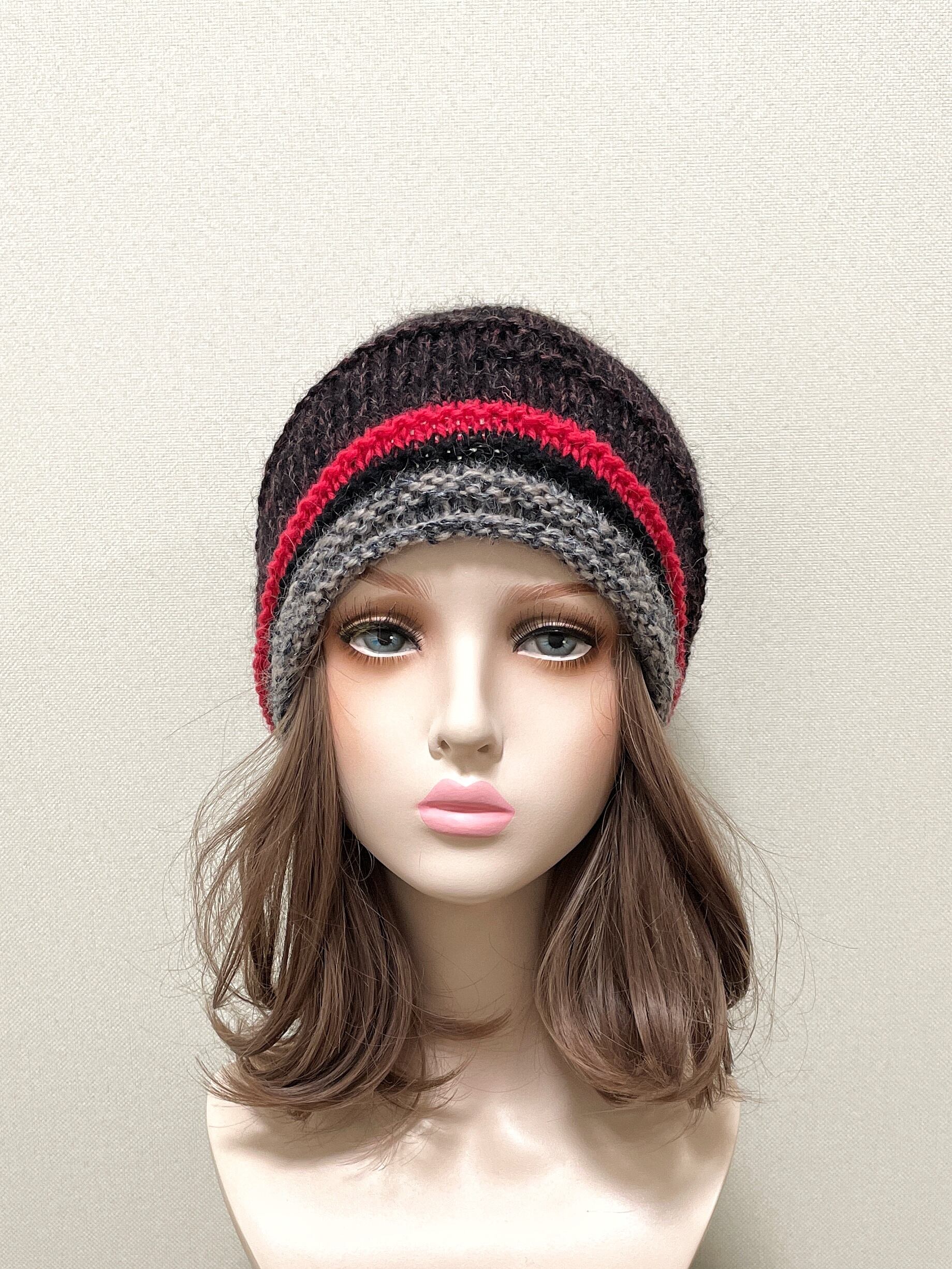 秋冬トレンドカラー、ファイアーワールをアクセントにシックにまとめたニット帽♡レッドブラウンで大人っぽく♪