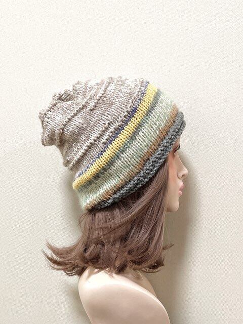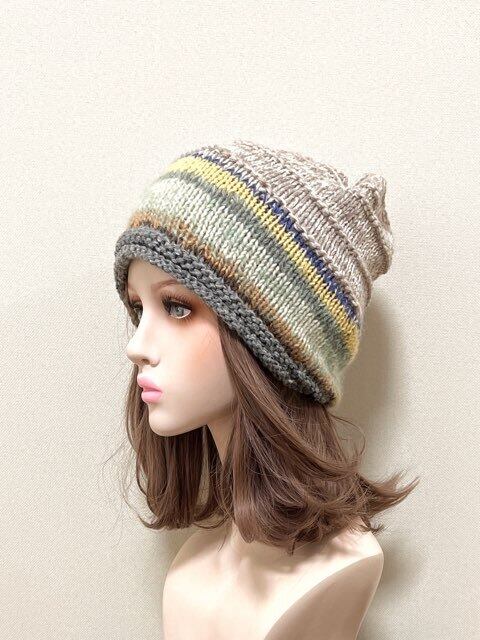 #ニット帽#帽子#ニット#手編み#春#秋冬#冬#厚手#防寒#ザックリ#ゆったり