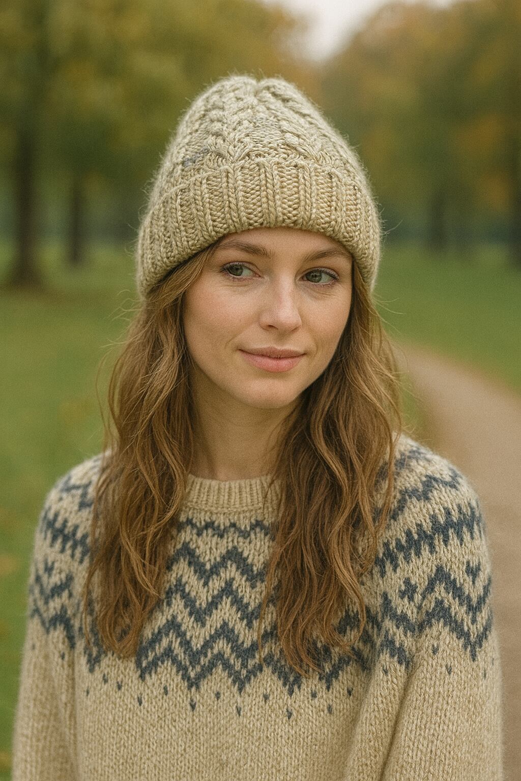 2トンカラーが可愛い暖かい縄編み模様がアクセントの