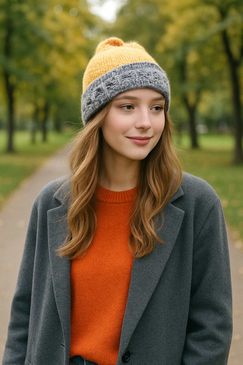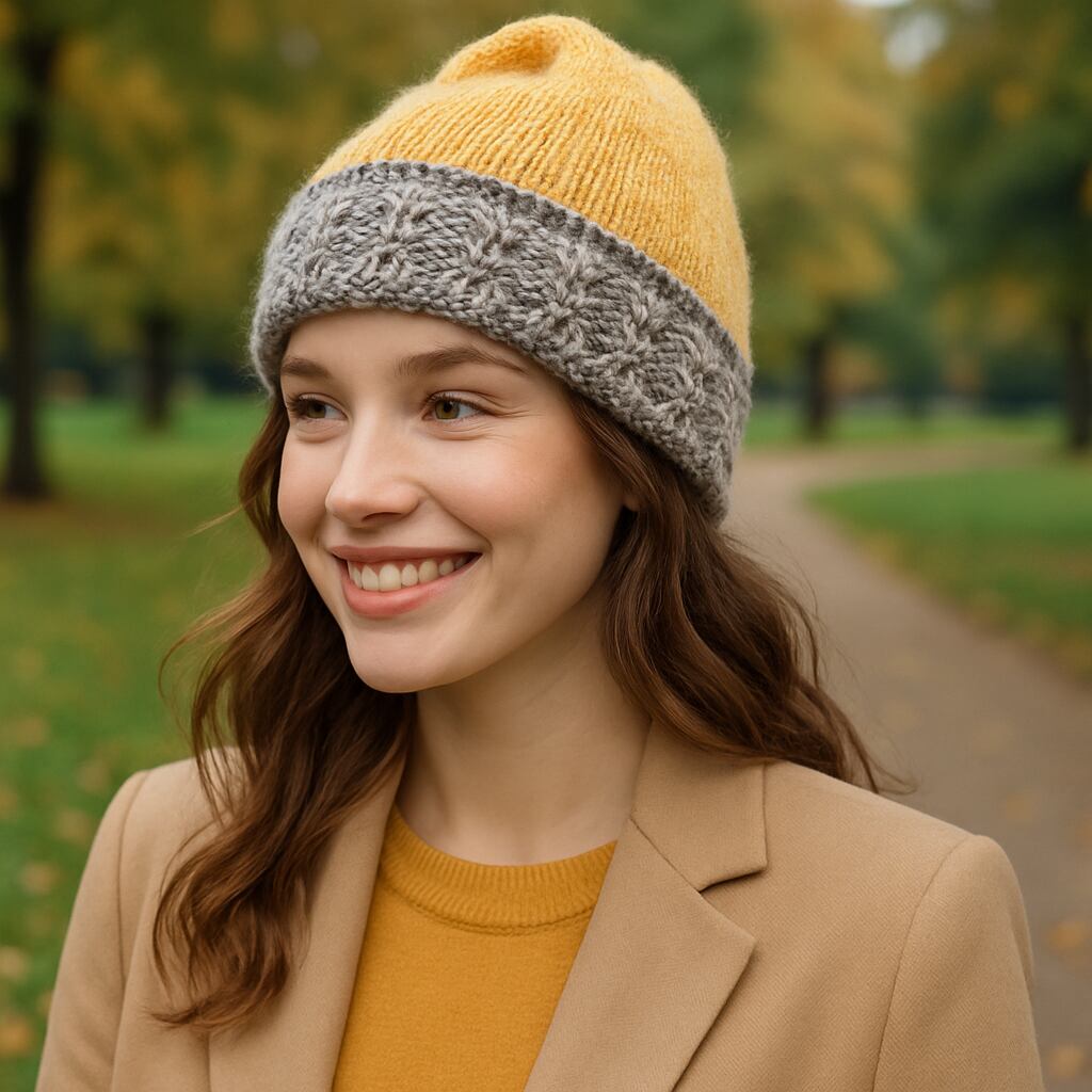 2トンカラーが可愛い暖かい縄編み模様がアクセントの
