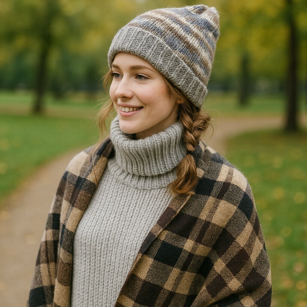 2トンカラーが可愛い暖かい縄編み模様がアクセントの
