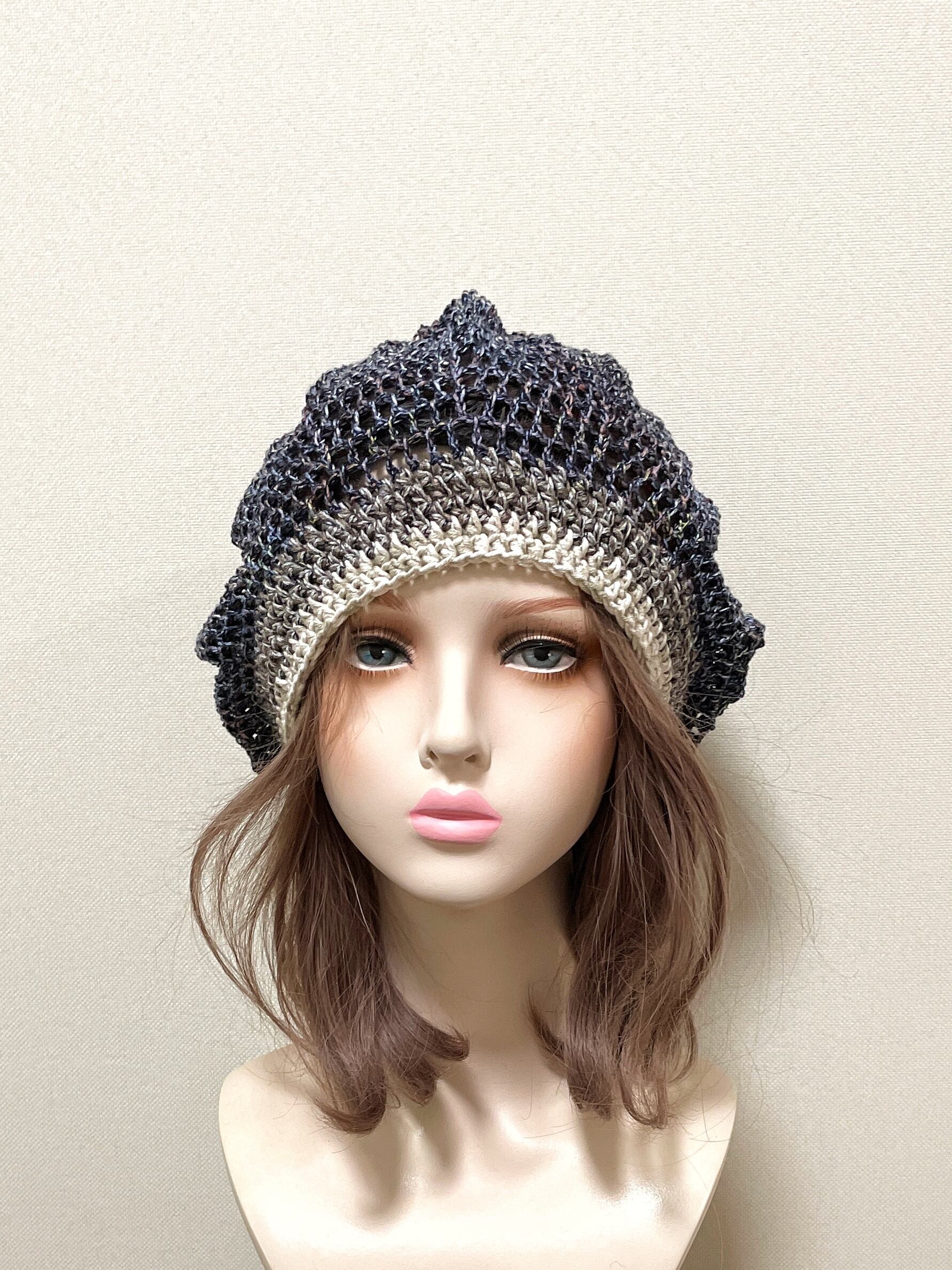 #ニット帽#帽子#ベレー帽#ゆったりベレー帽#可愛い帽子#手編みのニット帽#オリジナルニット帽#ハンドメイドニット帽#一点物ニット帽#レディースニット帽#メンズニット帽#男女兼用