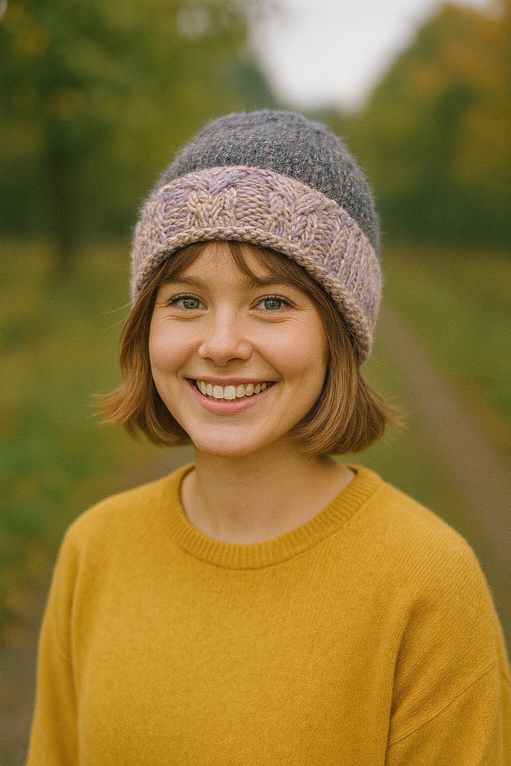 2トンカラーが可愛い暖かい縄編み模様がアクセントの