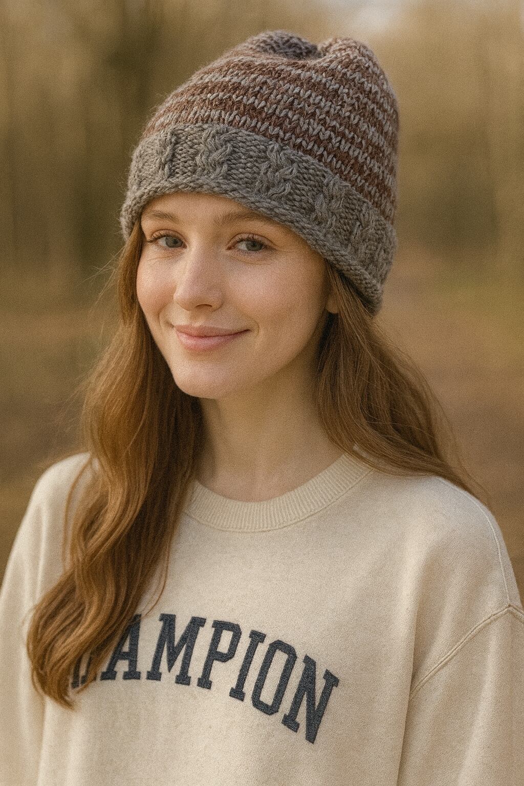 2トンカラーが可愛い暖かい縄編み模様がアクセントの
