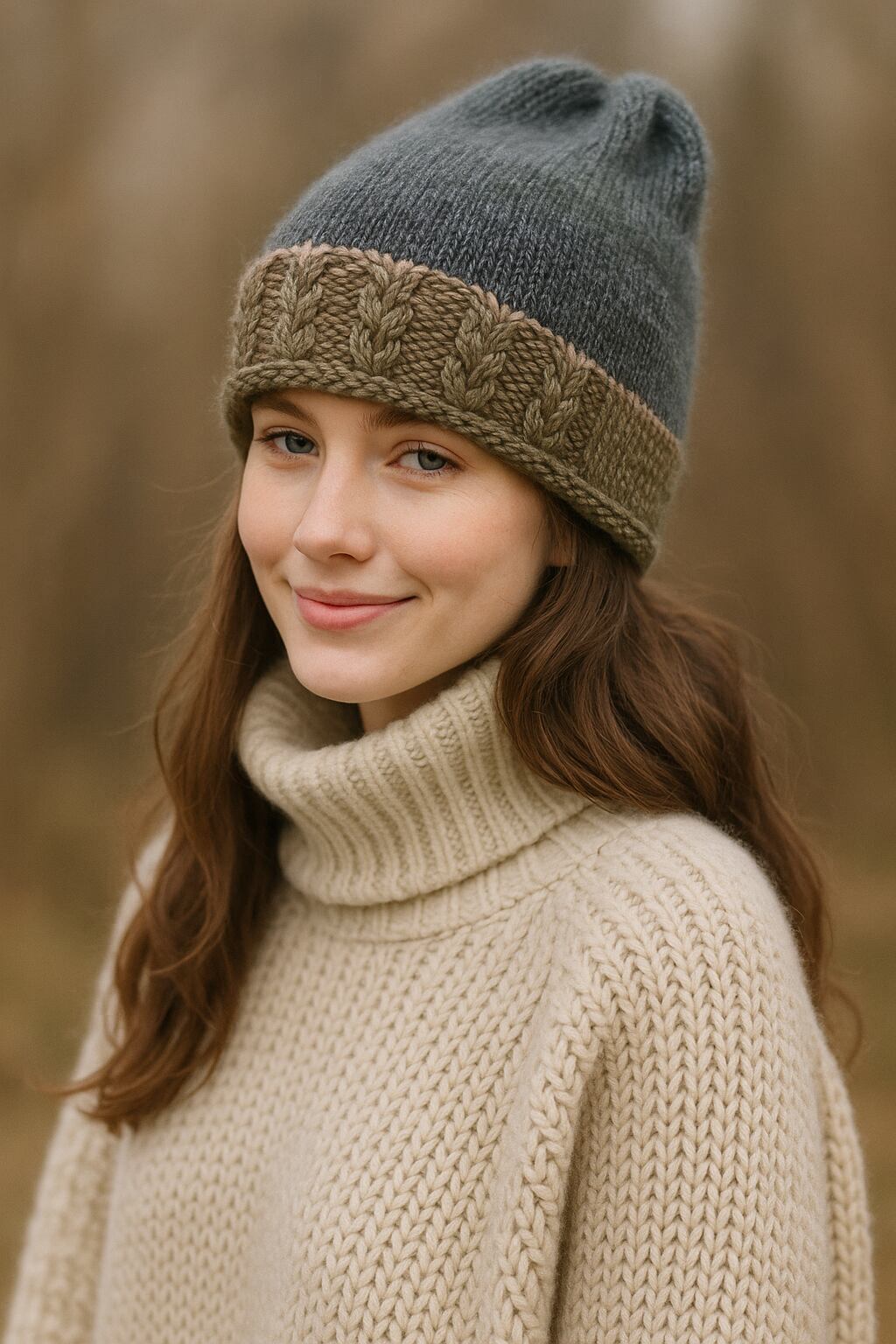 2トンカラーが可愛い暖かい縄編み模様がアクセントの