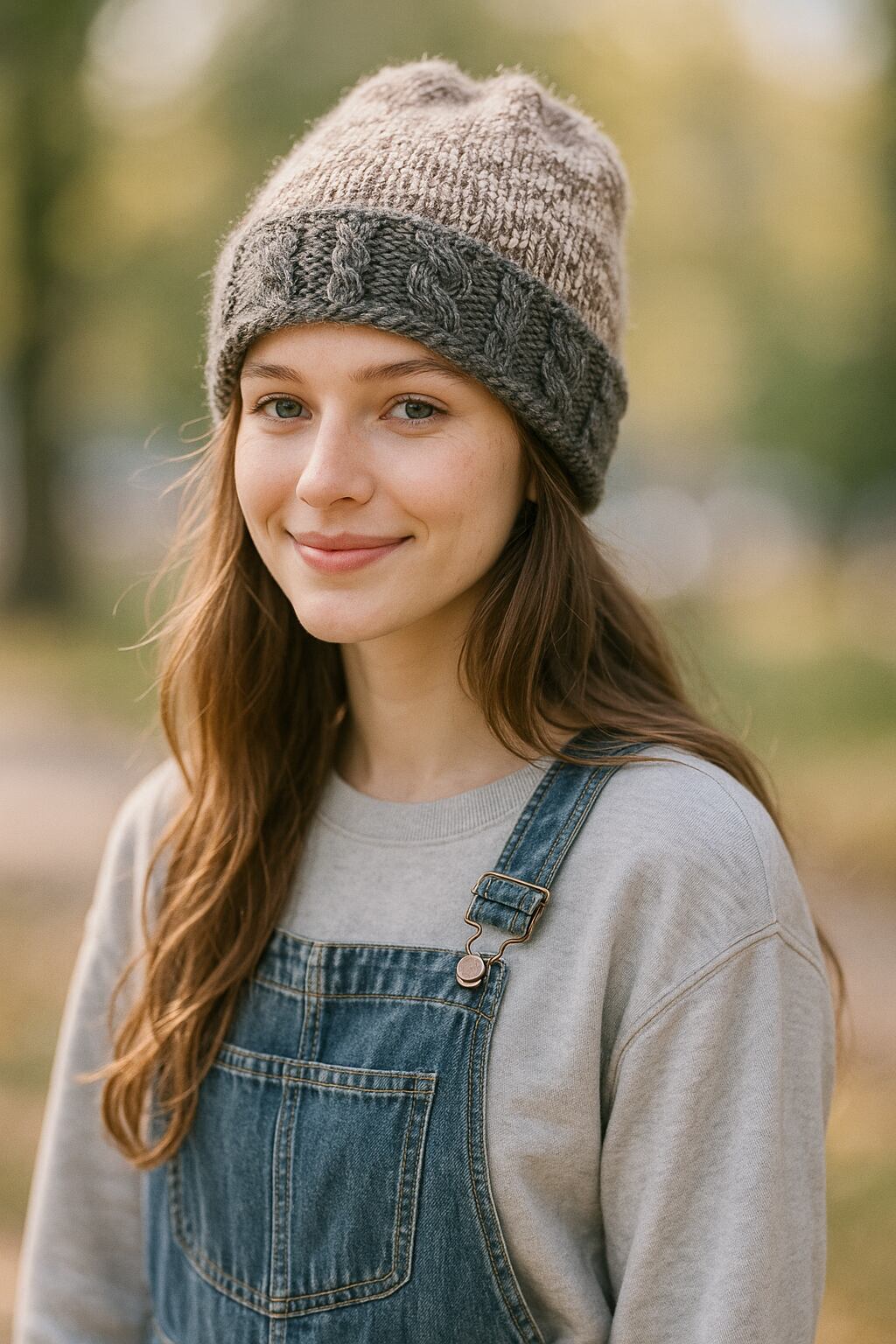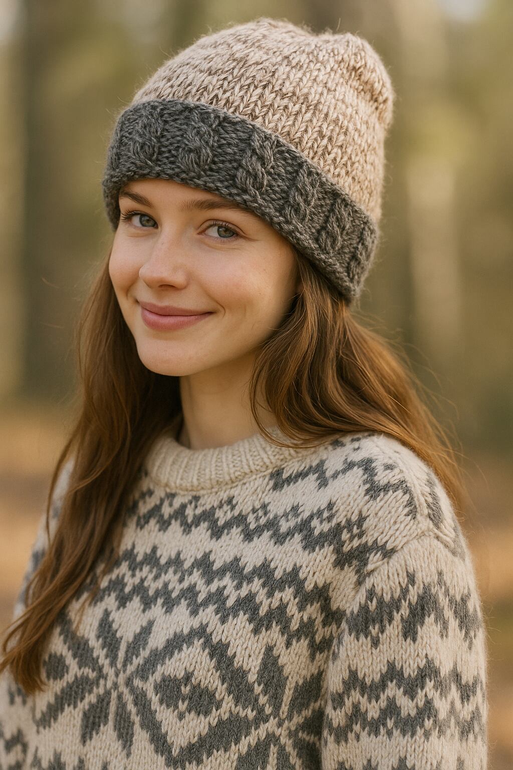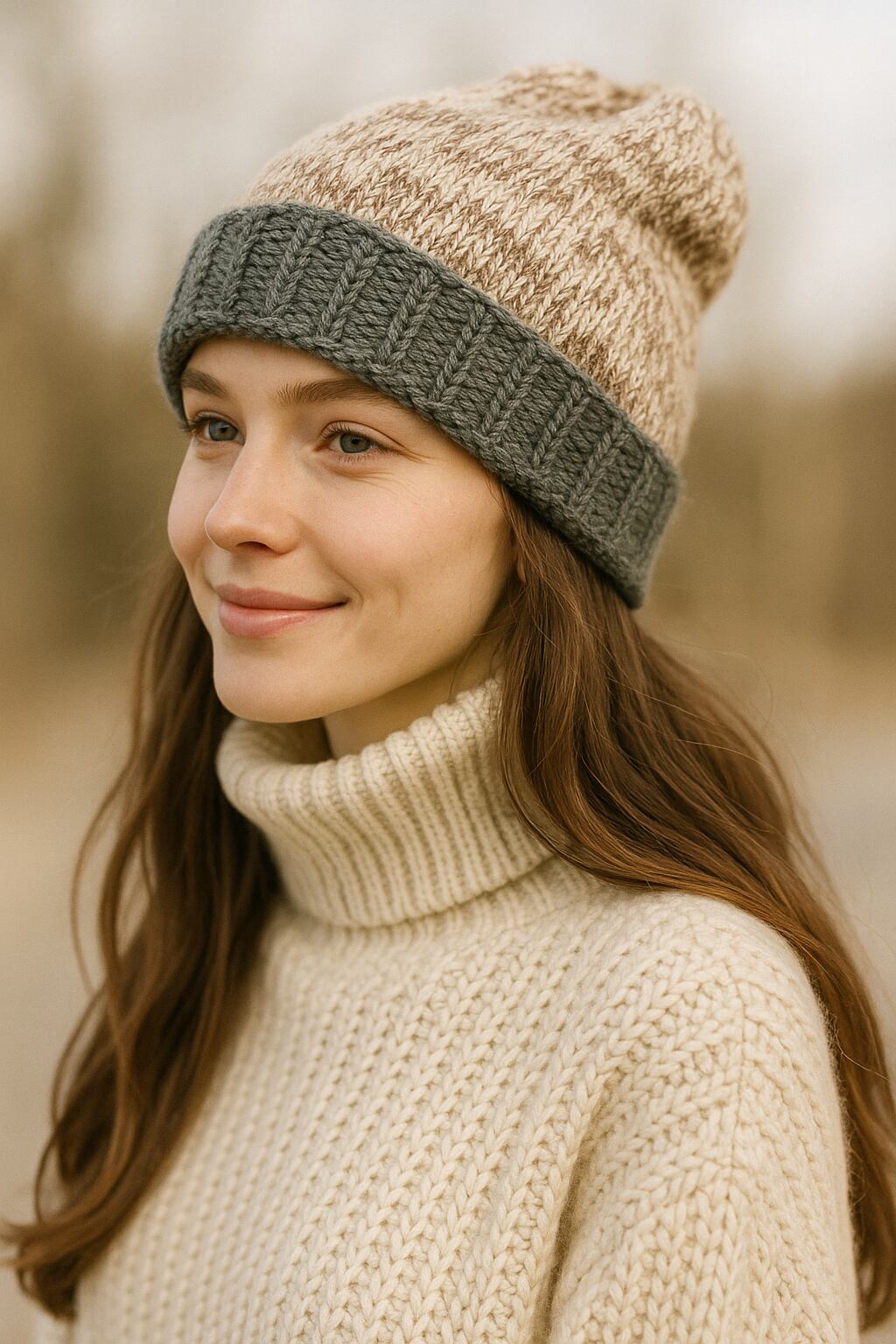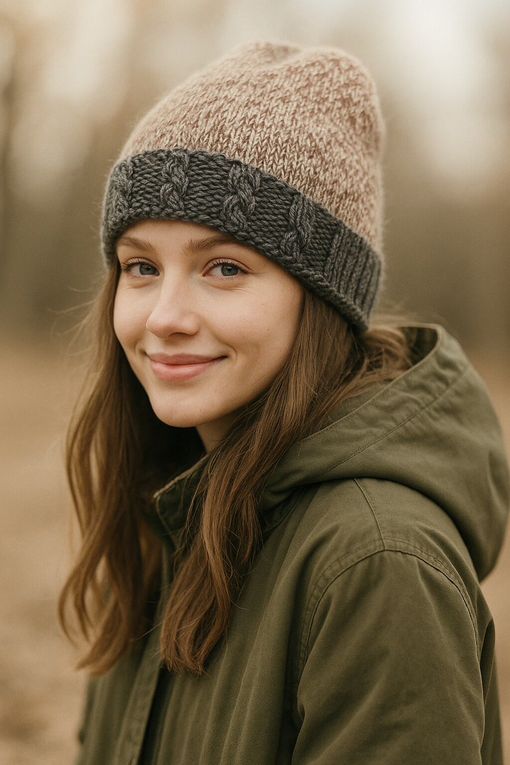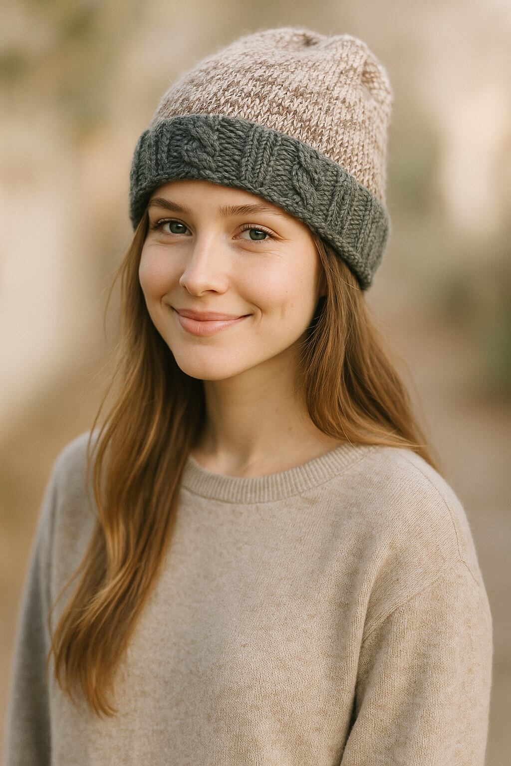2トンカラーが可愛い暖かい縄編み模様がアクセントの